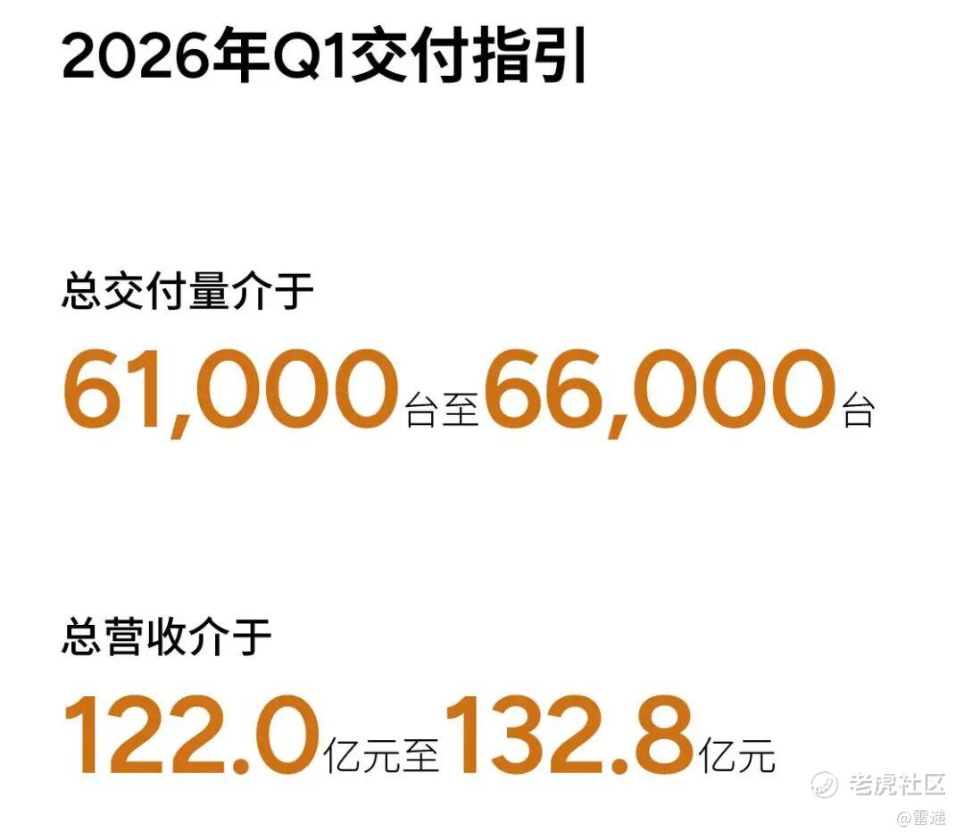 小鹏汽车预期2026年第一季度汽车总交付量将介于61,000台至66,000台,按年减少约29.79%至35.11%。