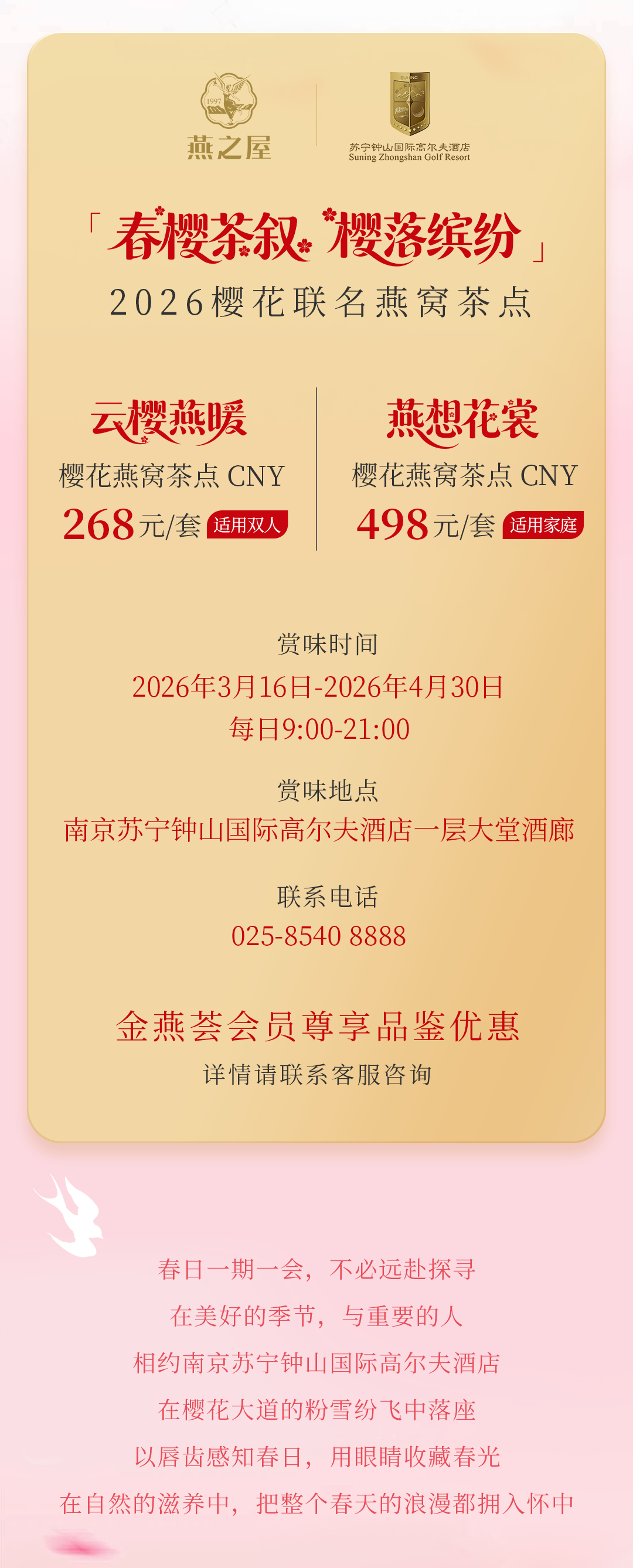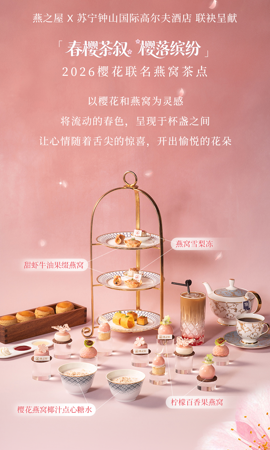燕之屋x苏宁钟山国际高尔夫酒店 | 樱花联名燕窝茶点随春上线