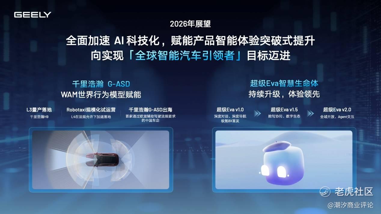 2025年,吉利率先发布行业首个全域AI技术体系,并在2026年CES完成2.0版本迭代,首发具备自我反思与进化能力的WAM世界行为模型,构建起统一的“整车大脑”。