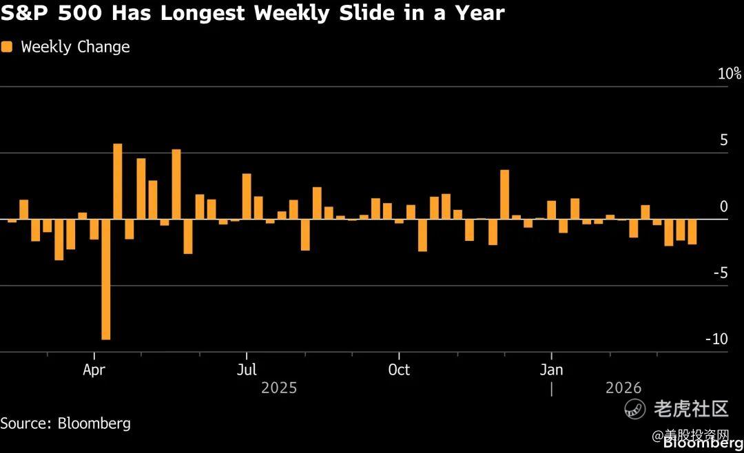 与此同时,罗素2000小盘股指数下跌2.26%,正式进入技术性回调区间。小盘股通常更依赖融资环境,对利率变化也更敏感,所以它们的走弱,不只是说明市场怕风险,也说明投资者开始担心,未来金融条件可能会比之前想得更紧。