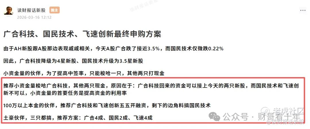 《飞速创新、广合科技、国民技术最终申购方案》