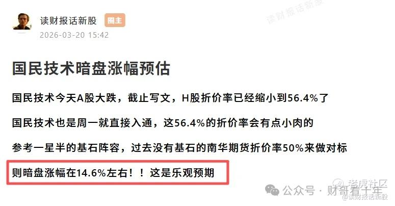 广合科技 $广合科技(01989)$ 今天首日上涨33.56%,飞速创新 $飞速创新(03355)$ 两大暗盘上涨44.47%-46.4%、国民技术 $国民技术(02701)$ 两大暗盘上涨8.33%-9.17%
