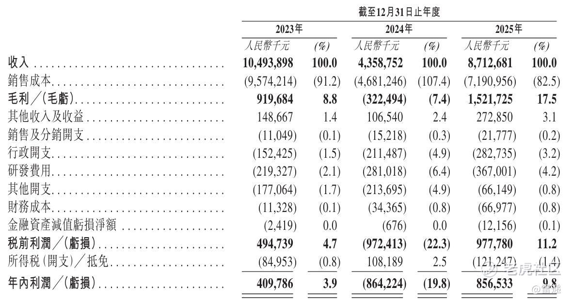 英发睿能2023年、2024年、2025年年内利润分别为4.1亿、-8.64亿、8.57亿元;年内利润率分别为3.9%、-19.8%、9.8%。
