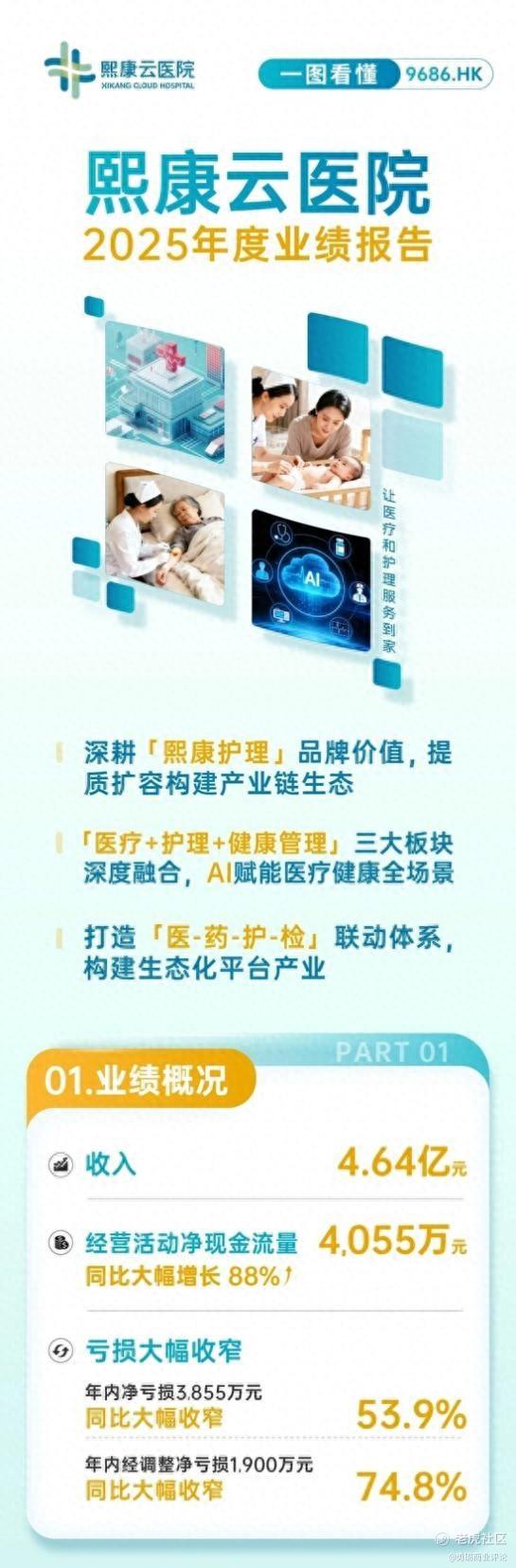 3月20日,熙康云医院(9686.HK)发布2025年全年业绩报告,通过剥离非核心亏损业务、处置线下低效资产,集中资源发力居家护理等核心业务,财务质量稳步改善,经营效率持续优化。