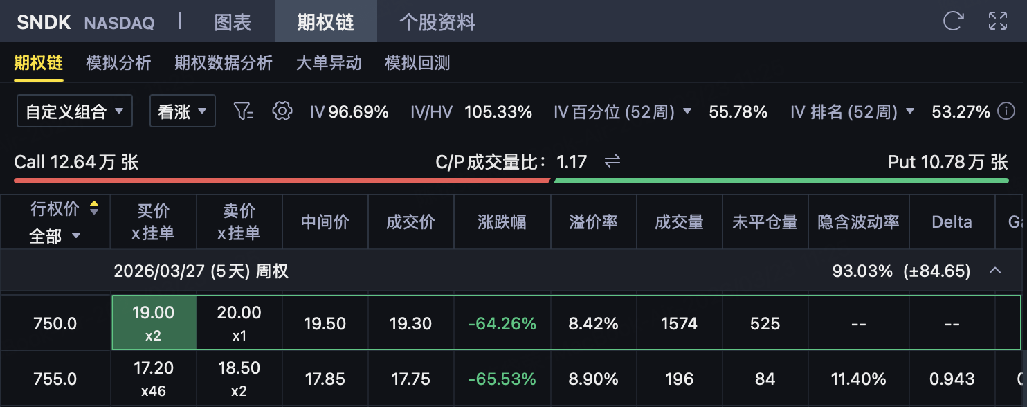 或SNDK隐含波动率较高,适合用卖方思路收取权利金