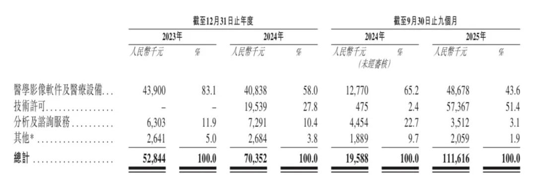 这一系列数据背后,是收入结构的根本性变化。早期公司靠卖设备,而从2024年开始,基于iMedImage大模型的“技术许可收入”迅猛增长。