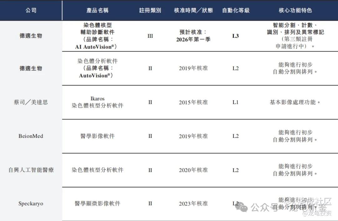目前在竞争格局中,德适不管是市场份额还是自动化等级维度都遥遥领先其它同类公司,并且德适的AI AutoVision软件在完成血液恶性肿瘤染色体核型适应证拓展后,预计将是该领域市场上首批能够提供全自动、端对端复杂核型分析流程的产品,典型的细分领域龙头公司。