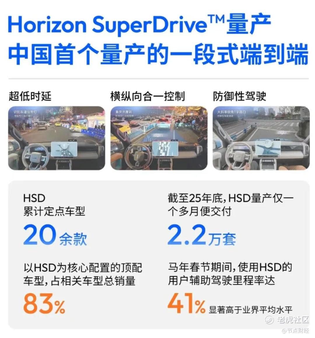 而这不只是地平线的阶段性成果,更像是一个信号:它正在被市场重估为“智能服务提供商”。试想,如果几千万保有量撑起一个高粘性的软件订阅市场,那个量级,可能远不止当下的收入。例如凯哥还在电话会上分享了一个小故事:春节期间,某款搭载HSD的车型,用户智驾里程占比达到41%。这说明HSD已不再是噱头,而是用户们愿意买单的必需品。
