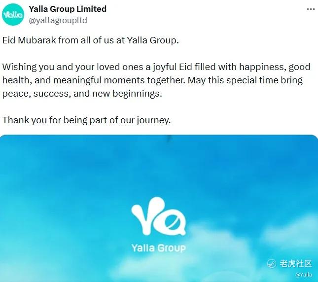 开斋节当天上午,Yalla Group团队也为所有用户送上了祝福,祝愿大家节日快乐、幸福安康。同时在Yalla产品的语聊房内,来自各地的用户们也齐聚一堂,互相问候、互送礼物,分享着节日的祥和与喜悦。