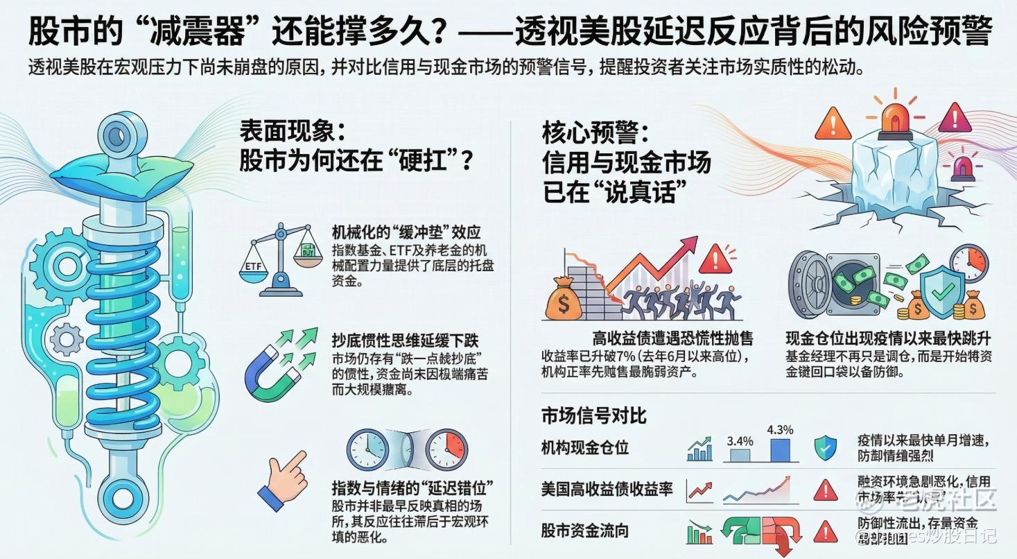 现在股票市场是一个反应有延迟的地方。不是说它不敏感,而是它背后有一层自动买盘和结构轮动在托着。哪怕情绪很差,资金也未必会第一时间全部跑掉。
