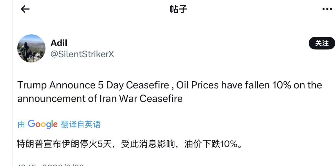 涨跌全看特朗普:他宣布停火 5 天!原油转头大跌,美股期货爆拉!明天稳了!