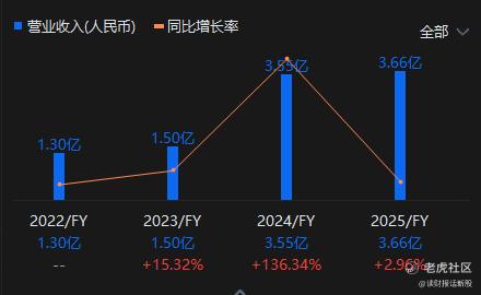 咱看下傅里叶,其2023年至2025年的收入曲线:1.5亿、3.55亿、3.66亿。其中最剧烈的爬升发生在2023-2024年,一年内实现翻倍以上增长,三年年复合增速高达56.2%