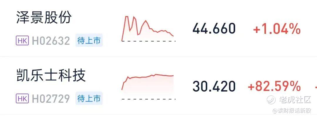 今天两只新股暗盘,全部上涨,其中最引人注目的是凯乐士 $凯乐士科技(02729)$ 的逆势暴涨82.6%,接近翻倍了