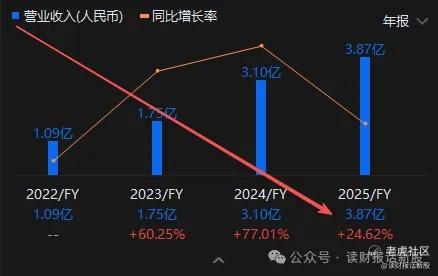 到了2025年年度,营收继续同比增长24.62%,达到3.87亿元。