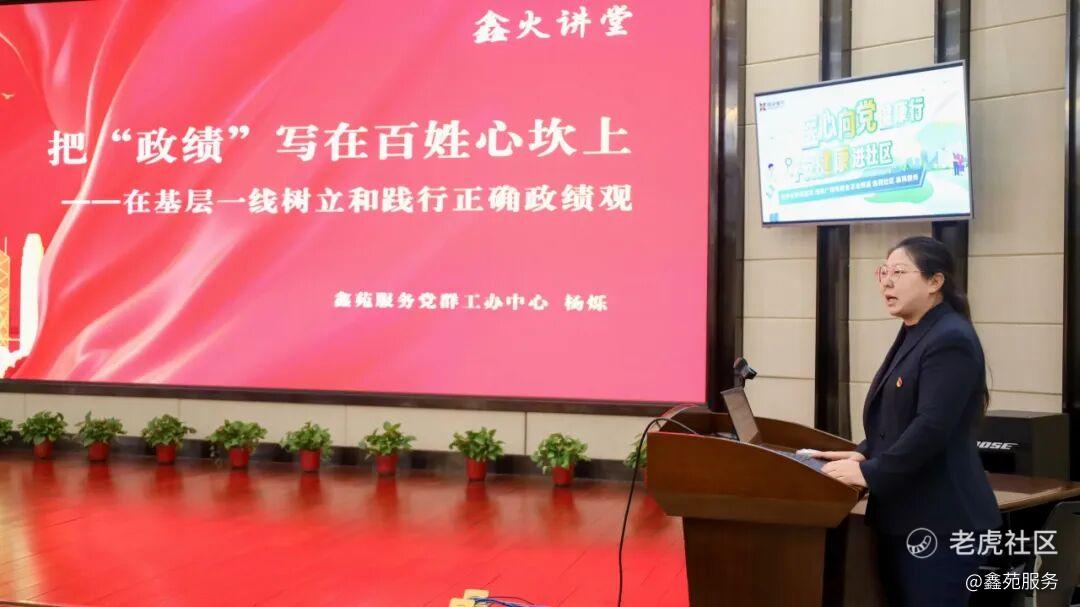 “把‘政绩’写在百姓心坎上——在基层一线树立和践行正确政绩观。”鑫苑服务党办主任杨烁的党课,没有讲大道理,而是从物业师傅修的一盏灯、医生问的一句“哪儿不舒服”说起。