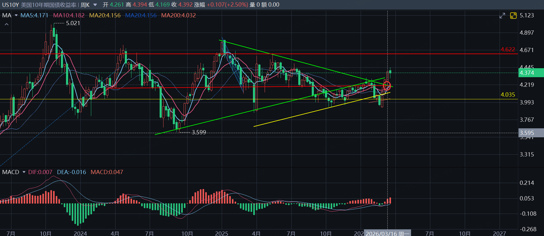 $美国10年期国债收益率(US10Y.BOND)$ $微型超10年美债主连 2606(MTNmain)$ $10年美债主连 2606(ZNmain)$