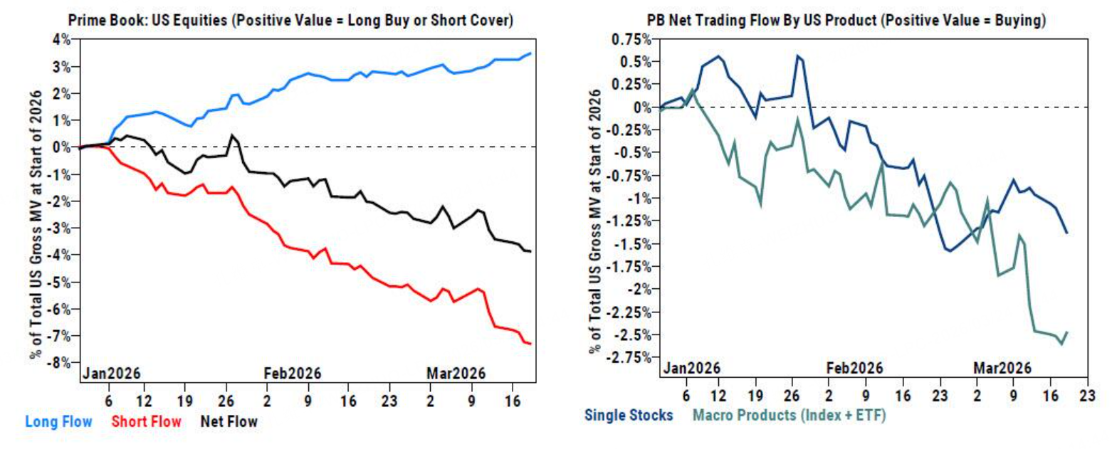 而由于宏观和指数类的产品持续卖空,高盛统计的主要席位对美国股市的资金净流向出现了连续第五周的净卖出。