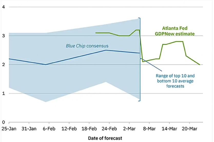 事实上,这种宏观层面的恶化已经开始显现数据端的恶果。亚特兰大联储的GDPNOW模型已将第一季度的GDP增长预期,从战争开始时的3.2%大幅下调至仅2.0%。