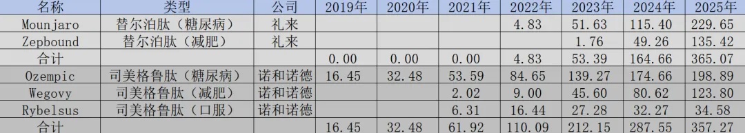 图:两大GLP-1药物销售数据(亿美元),来源:锦缎研究院