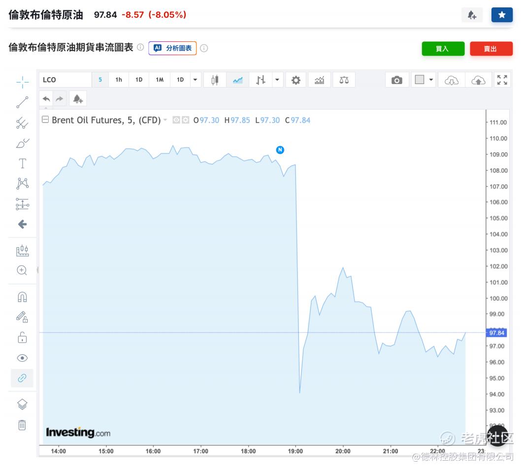 特朗普TACO的信息发出后,原油市场惊现高台跳水。WTI原油从99美元跌到85美元,布伦特原油从108美元跌到92美元。
