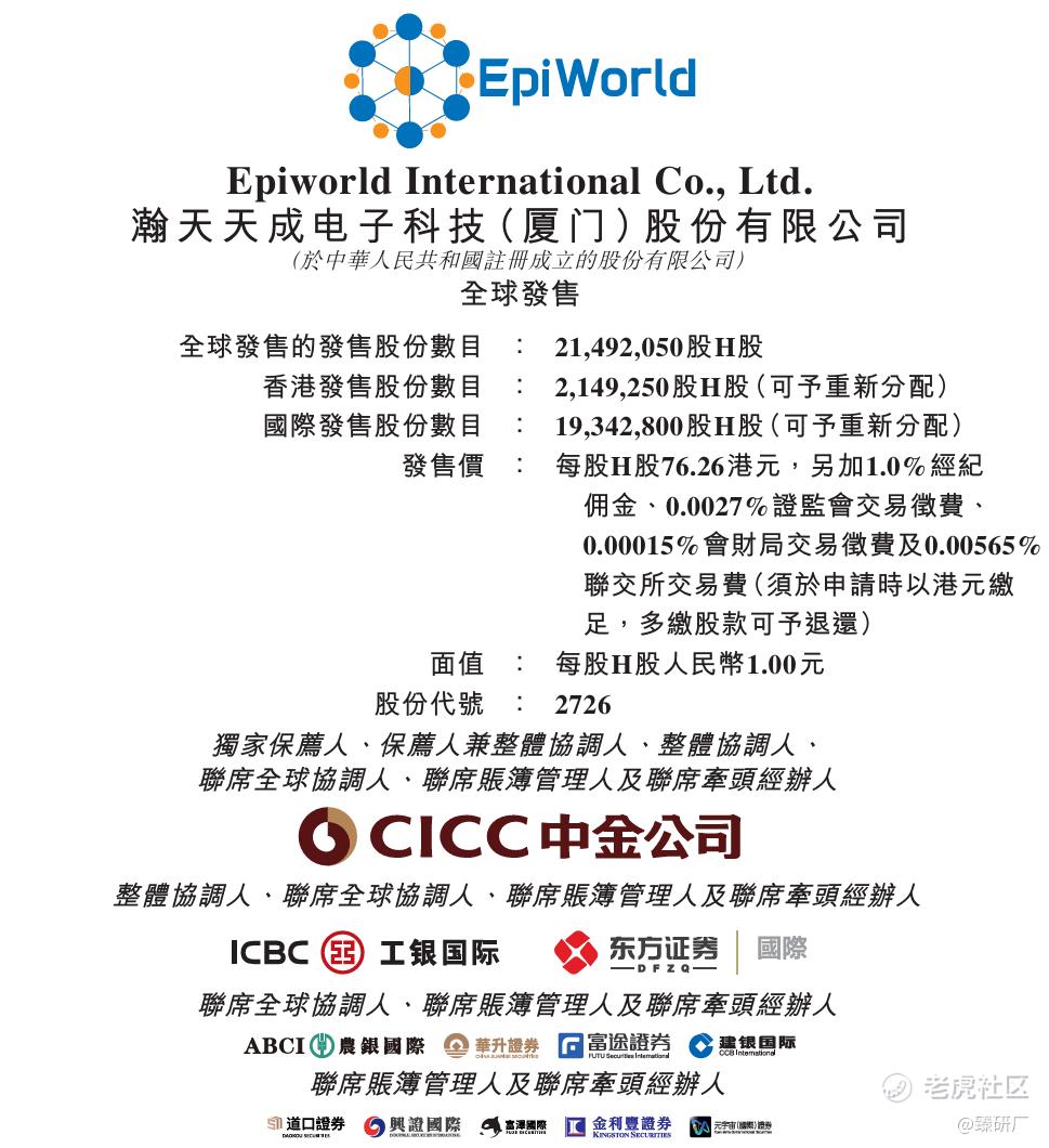 从发行结构来看,本次发行独家保荐人为中金,2026年以来参与度和胜率都较高;仅引入 1 名基石投资者厦门先进制造业基金,认购金额约 7.7亿港元,占本次发售股份的 46.8%,整体阵容较为单薄,无头部产业资本、顶级外资机构参与,不过该投资者为厦门国资,体现出公司获得了国资认可与背书;本次采用机制 B 发行,每手 50 股,公配42,985手,无绿鞋,除去基石锁定部分后,本次发行可在市场流通的股份对应市值约 8.7 亿港元,叠加发行估值处于行业较高水平,上市后股价波动风险较高。本次发行市值为324.55亿港元,流通市值为90.69亿港元,上涨14.3%即可达到目前103.67亿港元的入通门槛。