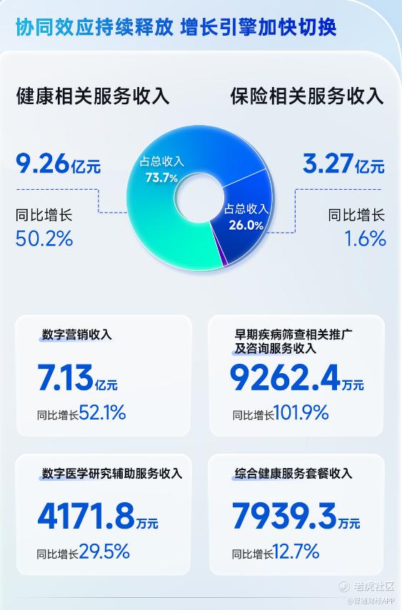 半人马 (i-Centaurus) 用户平台,支撑综合健康服务套餐的 AI 健康管理服务。2025 年触达 44,147 名用户,互动次数达 211,508 次,分别同比增长 26.3% 和 52.8%。对应的综合健康服务套餐收入 7940 万元,毛利率从 27.3% 提升至 36.7%。