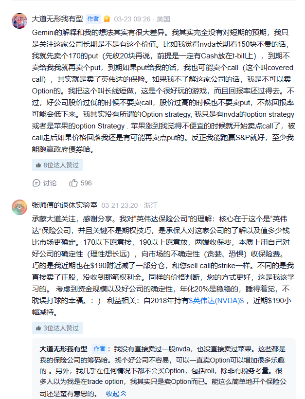 段永平原话:“我觉得nvda长期看150块不贵的话,我就先卖个170的put(先收20块再说,前提是一定有Cash放在t-bill上)。