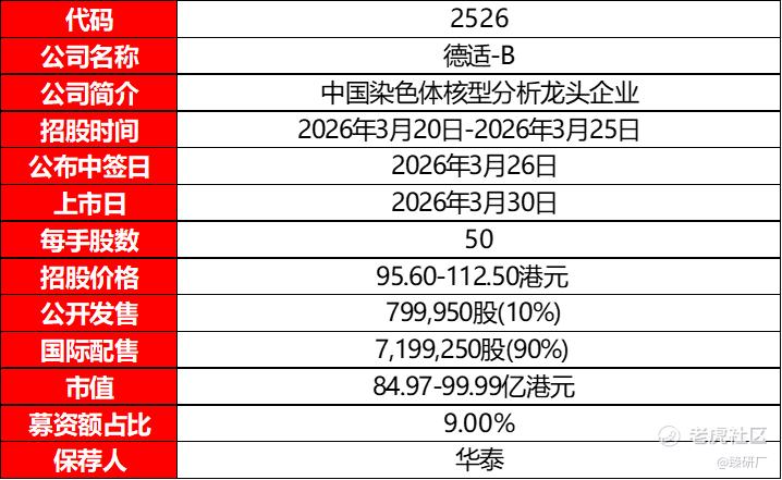 从市场情绪来看,同仁堂医养、华沿机器人等7只热门新股同步招股,打新资金面临显著分流。截至发稿,德适-B公开发售孖展超购465.82倍,在同期新股中位列第三,热度远超傅里叶、铜师傅、瀚天天成等多数标的,打新资金认可度突出,感兴趣的投资者可持续关注项目后续上市动态。