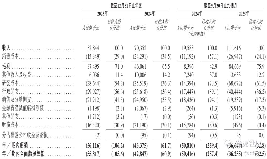 尽管公司仍处于阶段性亏损状态,但亏损规模持续收窄,盈利改善趋势明确。2023 年、2024 年公司全年净亏损分别为 5,611.6 万元、4,337.5 万元,亏损同比收窄 22.7%,净利率也从-106.3%提升至-61.7%;2025 年前 9 个月净亏损 3,664.9万元,较 2024 年同期进一步收窄,净利率也提升至-32.8%。