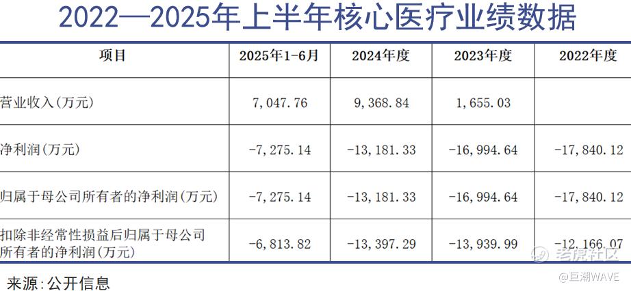 核心医疗的营收增长也较为迅速,但亏损情况同样不容乐观。招股书显示,2022年至2025年上半年,其归母净利润分别为-1.78亿元、-1.70亿元、-1.32亿元、-0.73亿元,累计亏损约5.53亿元。