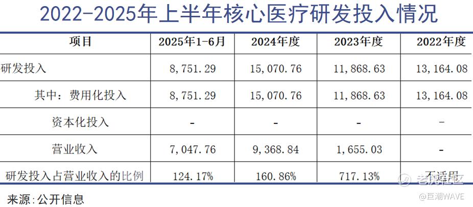 其次,持续高企的成本支出,是导致两家公司持续亏损的核心原因。人工心脏属于技术密集型产品,需要持续投入大量的资金用于技术研发、临床试验和产品迭代。2022年至2025年上半年,同心医疗的研发费用分别为9381.86万元、1.08亿元、1.48亿元和9315.39万元;核心医疗的研发投入同样不菲,研发投入占营业收入比例长期在100%以上。
