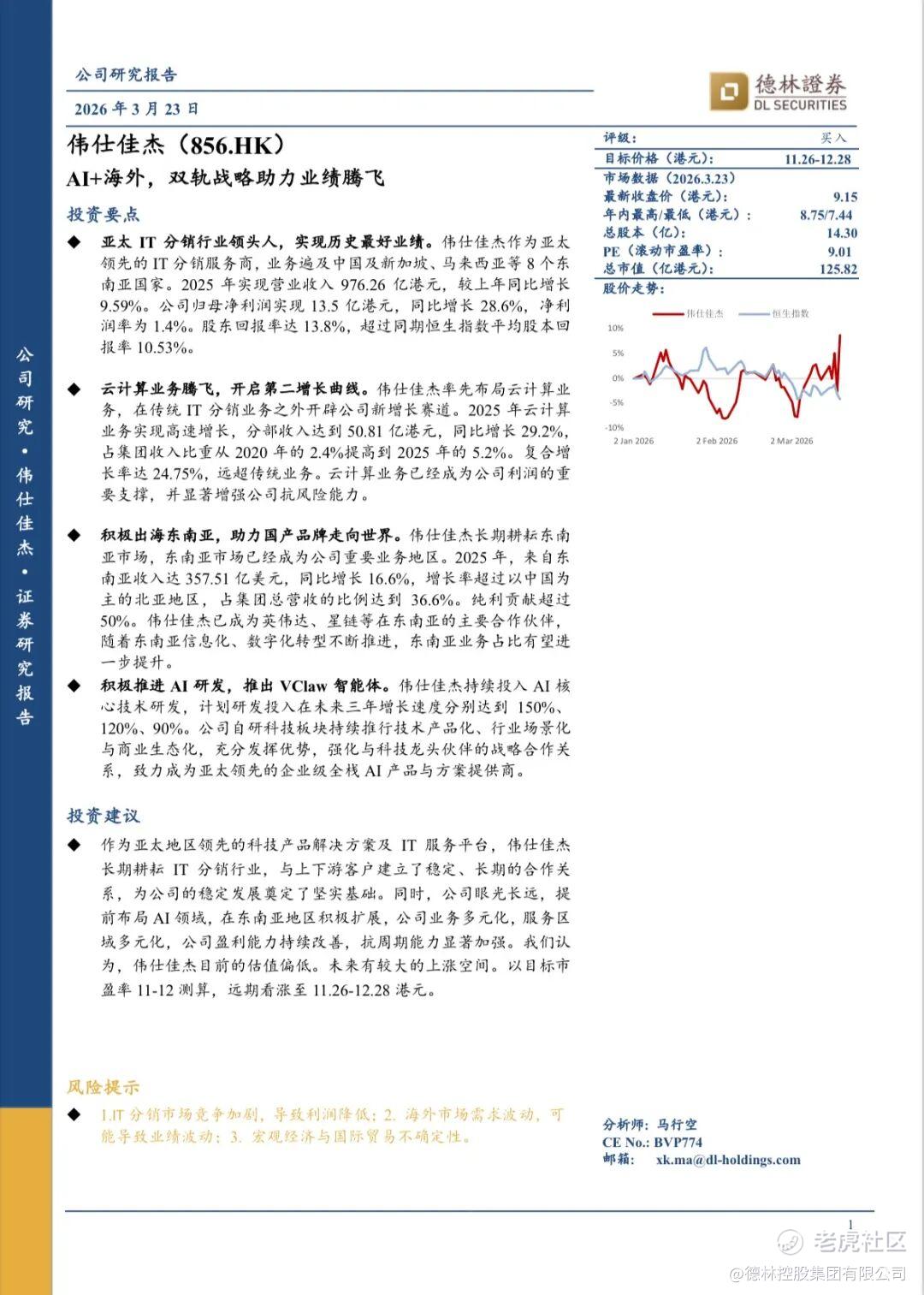 欲查看研究报告详细内容,请发送邮件至:cs@dl-securities.com 获取《伟仕佳杰(856.HK):AI+海外,双轨战略助力业绩腾飞》全文。