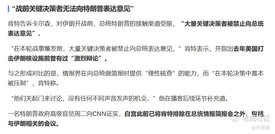 比较有意思的一件事情是,那位辞职的前反恐中心主任乔·肯特接受媒体采访时爆料,川普身边的班子已经构筑了“信息茧房”,然后24小时内遭FBI调查,暗示MAGA阵营内部的分裂进一步加剧。
