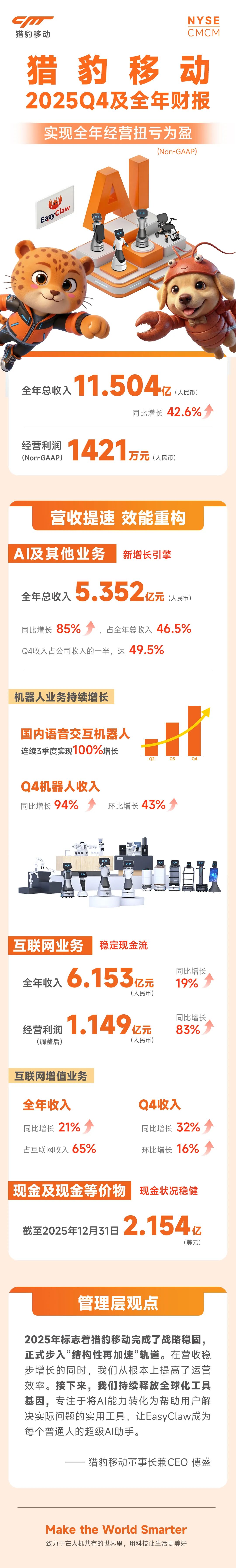 猎豹25Q4及全年财报:总收入11.5亿,经营扭亏为盈