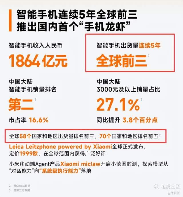 智能手机出货量全球前三 图源:小米公司