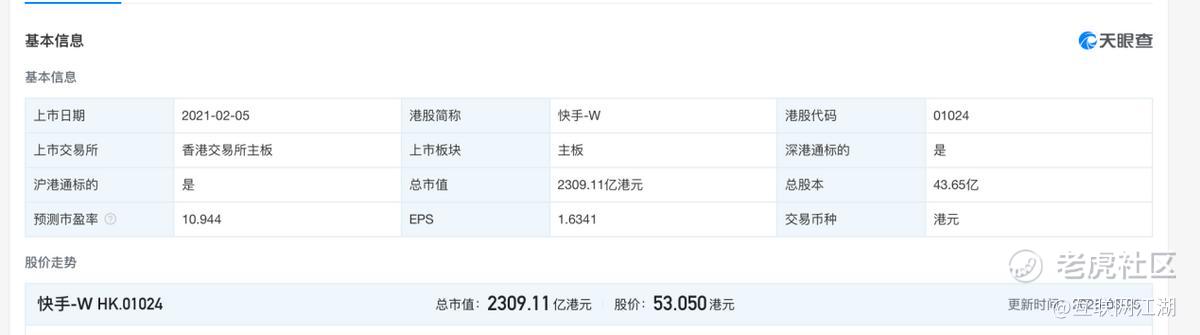 天眼查APP信息显示,快手2021年港股上市,当下总市值超2300亿港元。快手这个规模体量,营收利润还能保持两位数增长,科技行业里也少有。