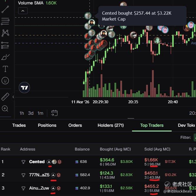包括 Cented 在内的「跟单收割者」,早已**惯了在几千美元市值的时候,通过主钱包以及几十甚至上百个分散的小钱包进行「捆绑」购入,然后在市值达到 10 万美元或是更低的位置就开始跑路。