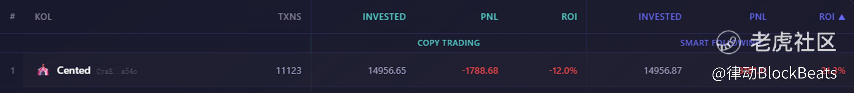 cookin.fun 模拟了大量 KOL 的交易,通过 10 秒真实延迟的跟单并在 10 分钟后卖出,以测试是否真的能通过跟单 KOL 获取收益。对 Cented 的跟单测试结果为,-21.3% 收益率。