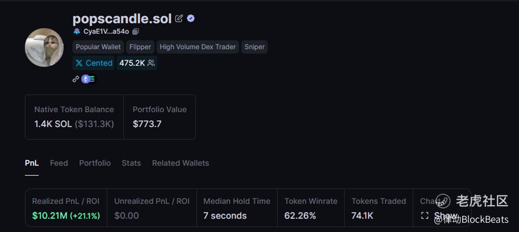 他在过去 30 天的已兑现利润约为 72.7 万美元,过去 7 天约为 19 万美元。