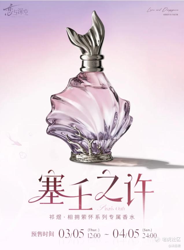 3月初,手游《恋与深空》里的“海神”祁煜过生日,官方顺势推出一款叫“塞壬之许”的角色香水。