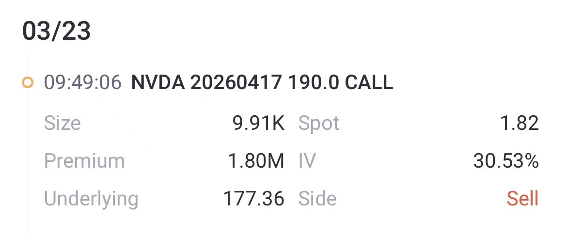 Sell OTM Call策略:大单中出现多笔远月和近月的Sell Call押注(包括卖出190美元Call、185美元Call)均针对虚值期权,体现了卖方通过选择有一定安全边际的价位来收取时间价值的典型策略逻辑。
