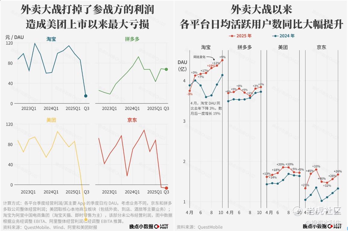 各类市场数据显示,当下淘宝闪购和美团的市场份额,已从去年的三七开,打到五五相当。结合媒体晚点2025年的报表数据可以看到:在几乎相当的补贴投入之下,美团在大战中的投入回报率最低的,同样花了大几百亿,几乎看不到增长效用。