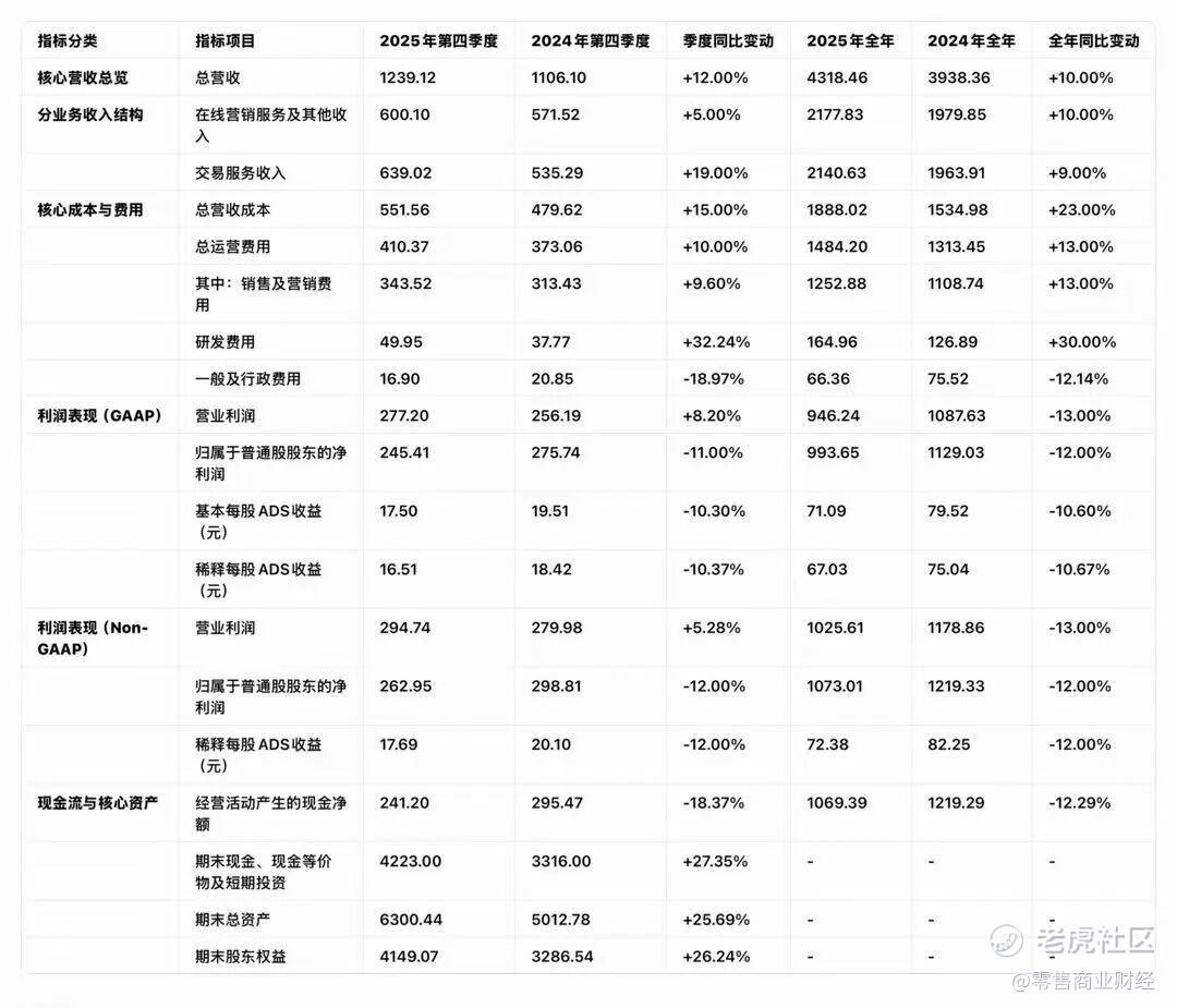 2025年全年,拼多多归属于公司普通股股东的净利润为993.65亿元,同比下降12%,第四季度净利润245.41亿元,同比下降11%。需要明确的是,本次利润下滑并非源于经营能力的弱化,而是平台主动的战略取舍。
