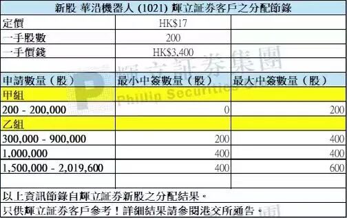 华沿机器人:最终孖展(预测)上5000倍。甲组全员抽签,貌似甲尾中签率还可以,乙组稳重1手,顶头槌(货值6.7个乙头)可以中2-3手。