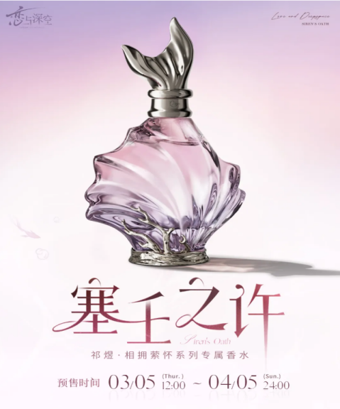 3月初,手游《恋与深空》里的“海神”祁煜过生日,官方顺势推出一款叫“塞壬之许”的角色香水。