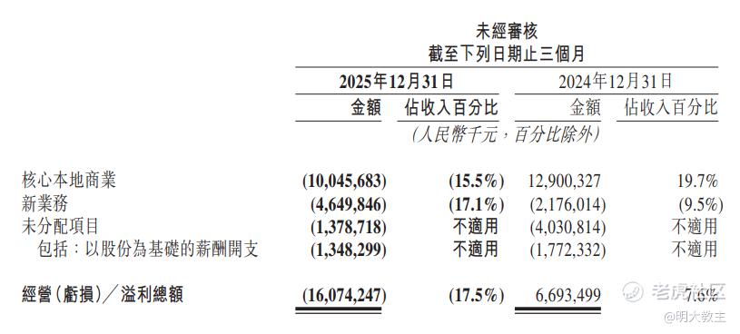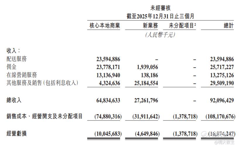 不过大家会发现美团Q4“新业务”亏损扩大了113%。海外业务本地化运营物流网络等方面还需要加大投入,2026年新业务这块的亏损可能还要扩大。