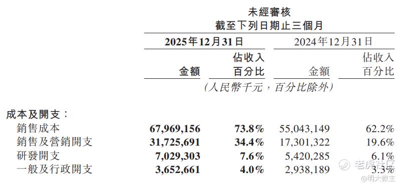 2025Q4 美团销售成本+销售及营销开支比前一年同期多了273亿。