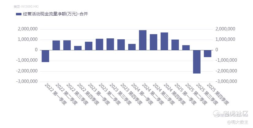 美团的现金流问题是其垄断红利消失、竞争成本飙升、刚性支出增加三重叠加的必然结果。2025年Q4美团经营现金流净流出65.71亿,较Q3 221.48亿的净流出有所收窄。全年口径美团经营现金流净流出超138亿。美团正通过收回投资和加大融资回笼现金流。