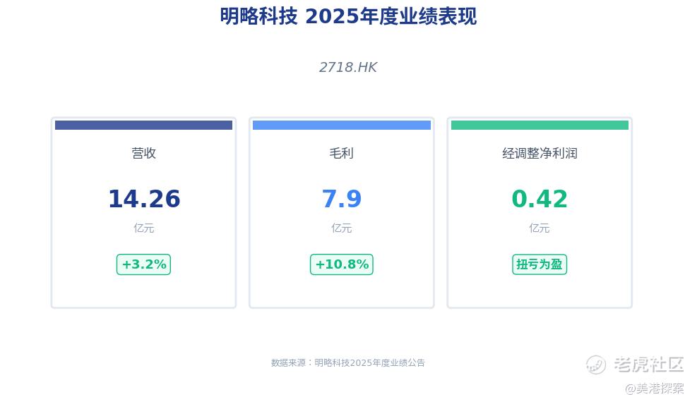当然,看财报不能只看数字,要看趋势。明略科技(2718.HK)刚发了2025年成绩单:营收14.26亿,增长3.2%,毛利7.9亿,增长10.8%,经调整净利润扭亏为盈,赚了4200万。数据不错,但这只是皮毛。