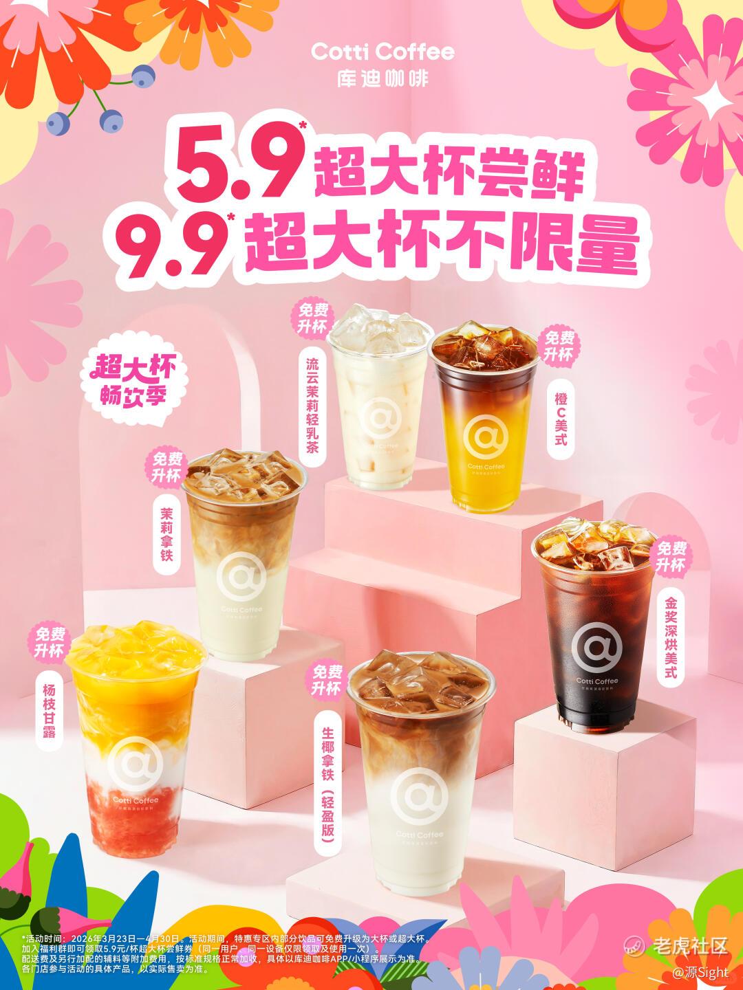 库迪则延续此前自己无套路的风格,推出“9.9元不限量畅饮,买大杯免费升超大杯”政策,叠加5.9元尝鲜券,新老用户均可参与。